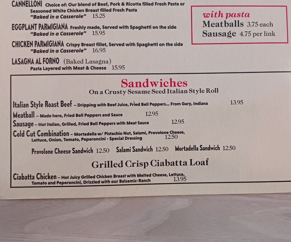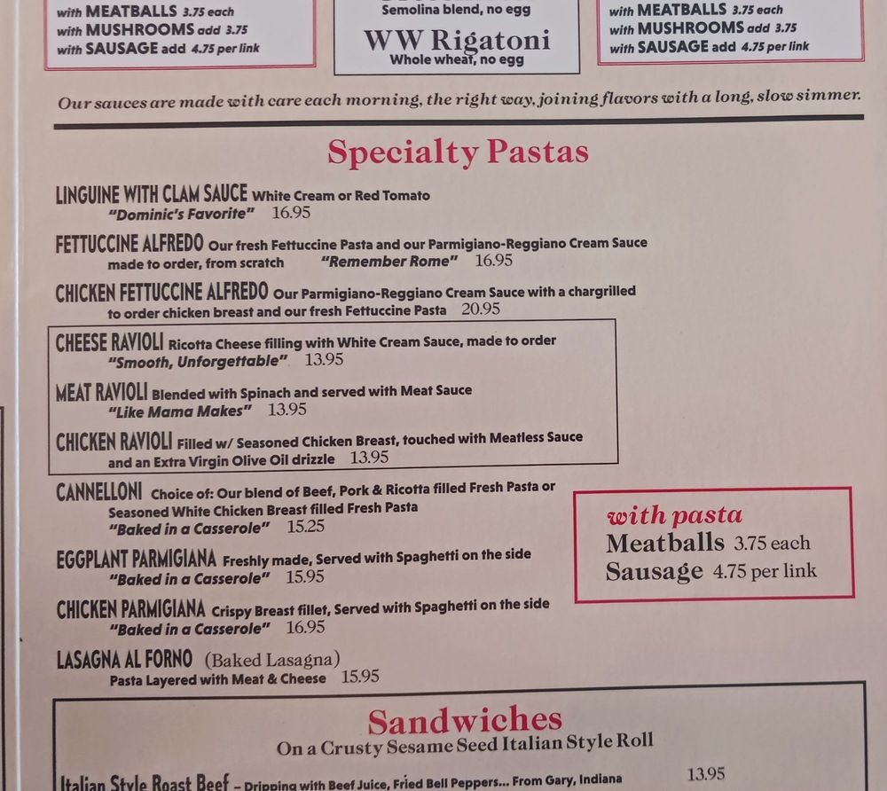 Choice of: Our blend of Beef, Pork & Ricotta filled Fresh Pasta or Seasoned White Chicken Breast Filled Fresh Pasta "Baked in a Casserole"