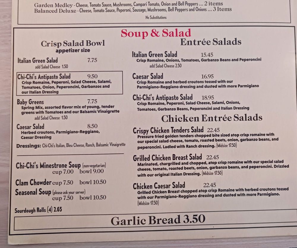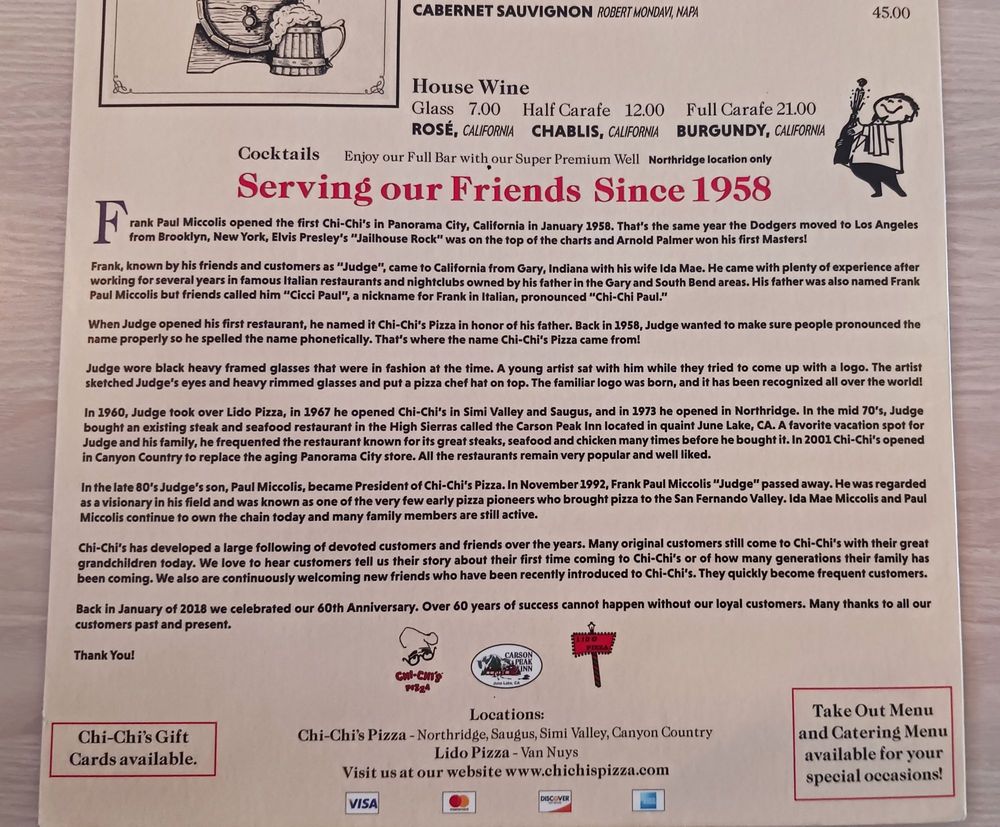 Chi Chi’s Pizza, located in Northridge, CA, offers a variety of delicious options from their menu. Their classic tomato sauce and cheese pizza is always a favorite, with the option to add fresh toppings like sausage, mushrooms, and olives. Customers rave about the flavorful pizza and exceptional service at Chi Chi’s. The restaurant also offers the ability to design your own pizza with a variety of toppings to choose from. With a full bar, outdoor seating, and catering options available, Chi Chi’s is a versatile spot suitable for any occasion. The restaurant has received praise for its family-friendly atmosphere and affordable prices, making it a go-to spot for Italian classics. If you're in the mood for authentic Italian cuisine, Chi Chi’s Pizza is a must-visit destination.